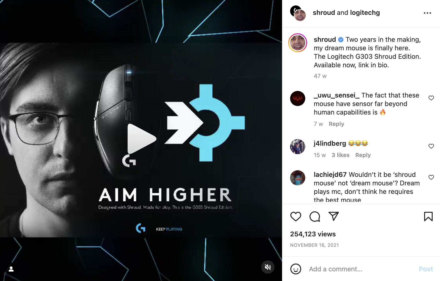 Shroud (live streamer and gamer) teamed up with Logitech to create a gaming mouse. Gamers will certainly consider such a mouse because it was developed by a ‘household’ name like Shroud.