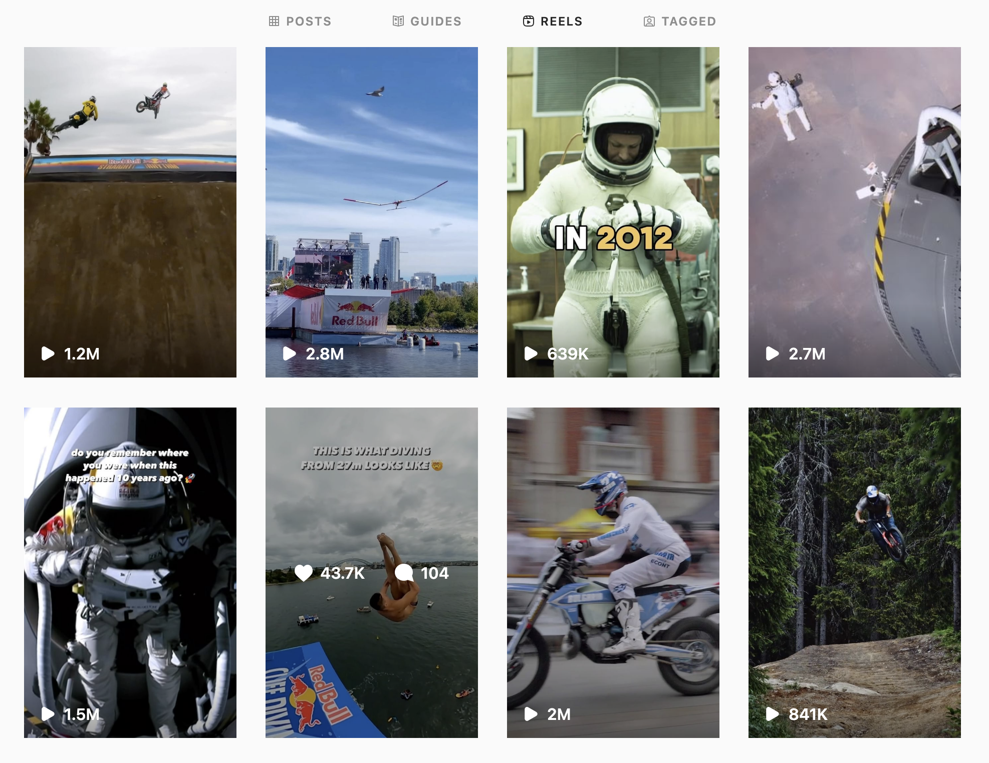 Red Bull is a brand that loves uploading its publicity stunts to Instagram in the Reels format. Their Reels regularly surpass millions of views and make for great viral content.