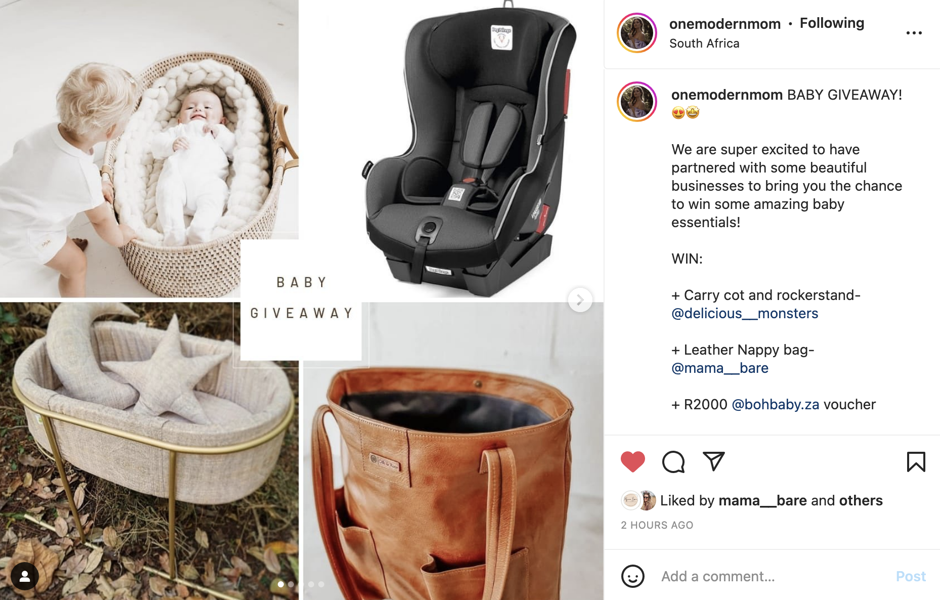 One Modern Mom hosted an Instagram giveaway to grow her audience and increase engagement.