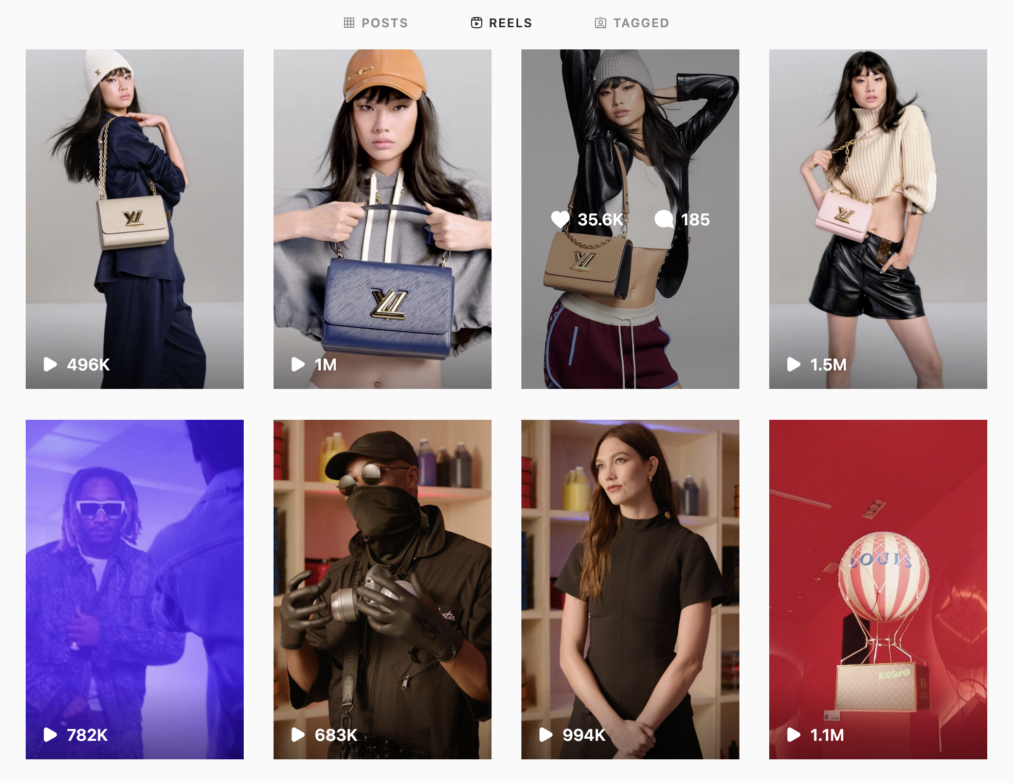 Louis Vuitton uploads Reels that showcase its products. In addition, some Reels feature interviews and product presentations from their influencers.