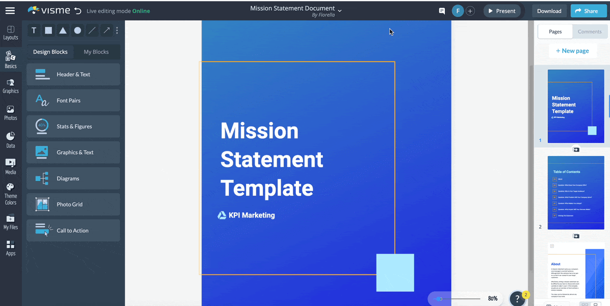 Visme’s drag-and-drop editor and beginner-friendly user interface allow you to create thousands of design projects without the need for a designer or code. Plus access thousands of professionally designed templates to get you off on the right foot.