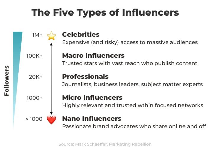 Influencers come in all shapes and sizes. Or all niches and audiences. Big-time influencers with massive followings will cost more than smaller influencers, known as micro-influencers.