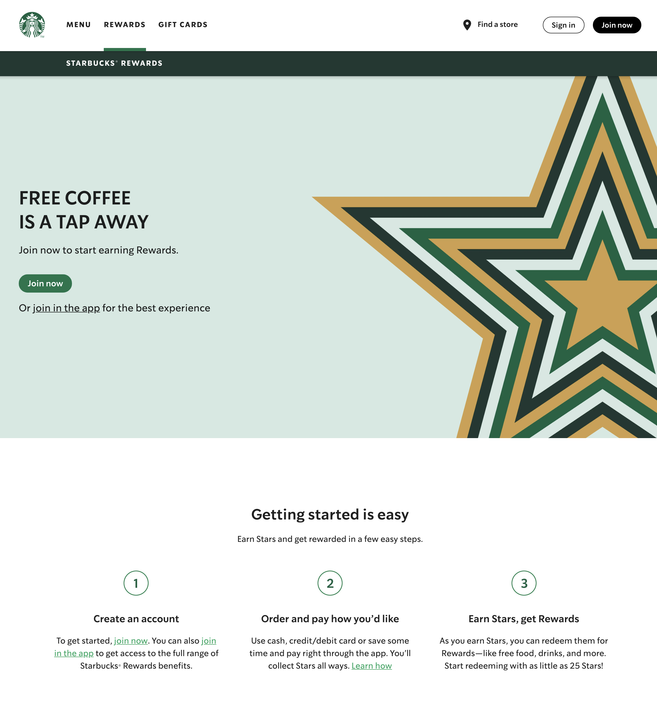 The Starbucks Rewards program enables customers to collect loyalty points by ordering or paying for food and drinks through a special app. After a certain threshold has been crossed, the loyalty points can be redeemed for freebies.