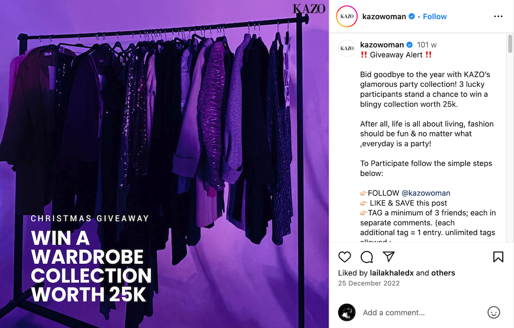 The more people use your hashtag on social media giveaway contests, the more visibility you will gain. This will increase your opportunity to promote your business on the platform and become known by the audience. The winner can either be chosen randomly or based on engagement on the posts.