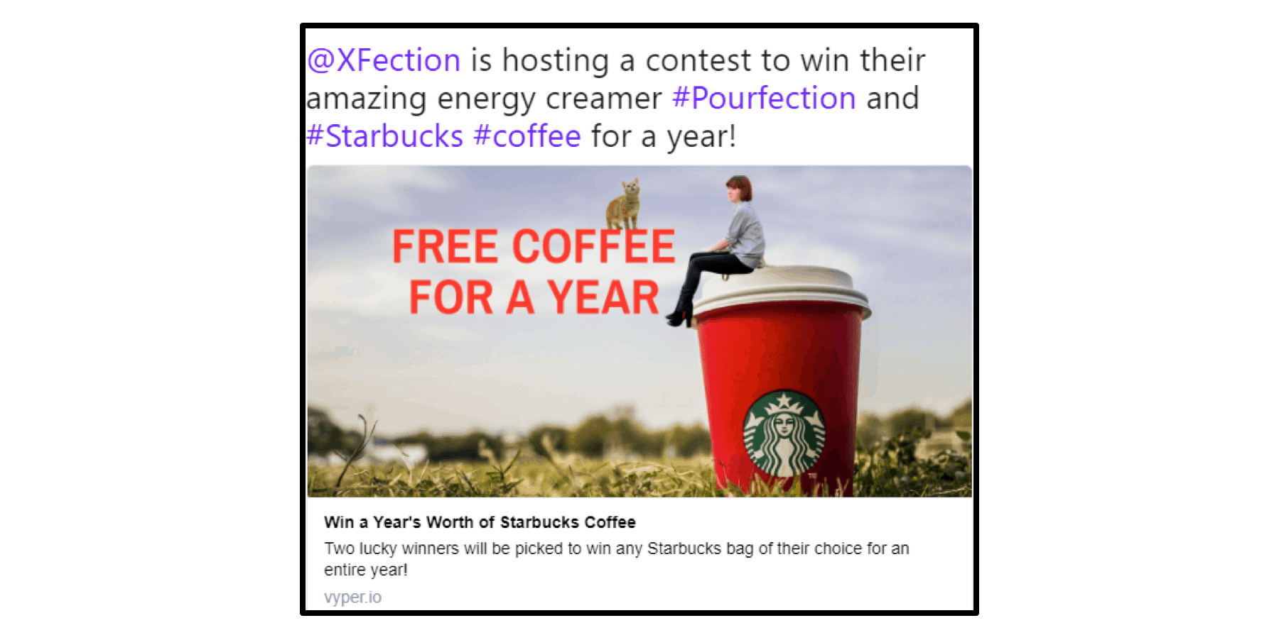 So whenever users on Twitter search #starbucks, or #coffee the likelihood our Twitter page and contest would be discovered increases.