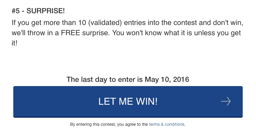 The idea is that you offer something that users get even when they don’t win. For example, this could be a PDF download, a coupon to your store, or some other small freebie.