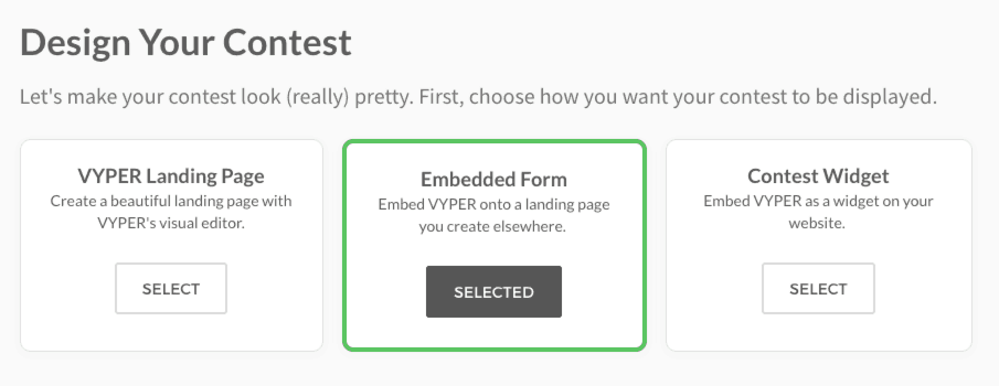 This meant that they designed their own landing page then embedded the VYPER giveaway sign up fields on that page.