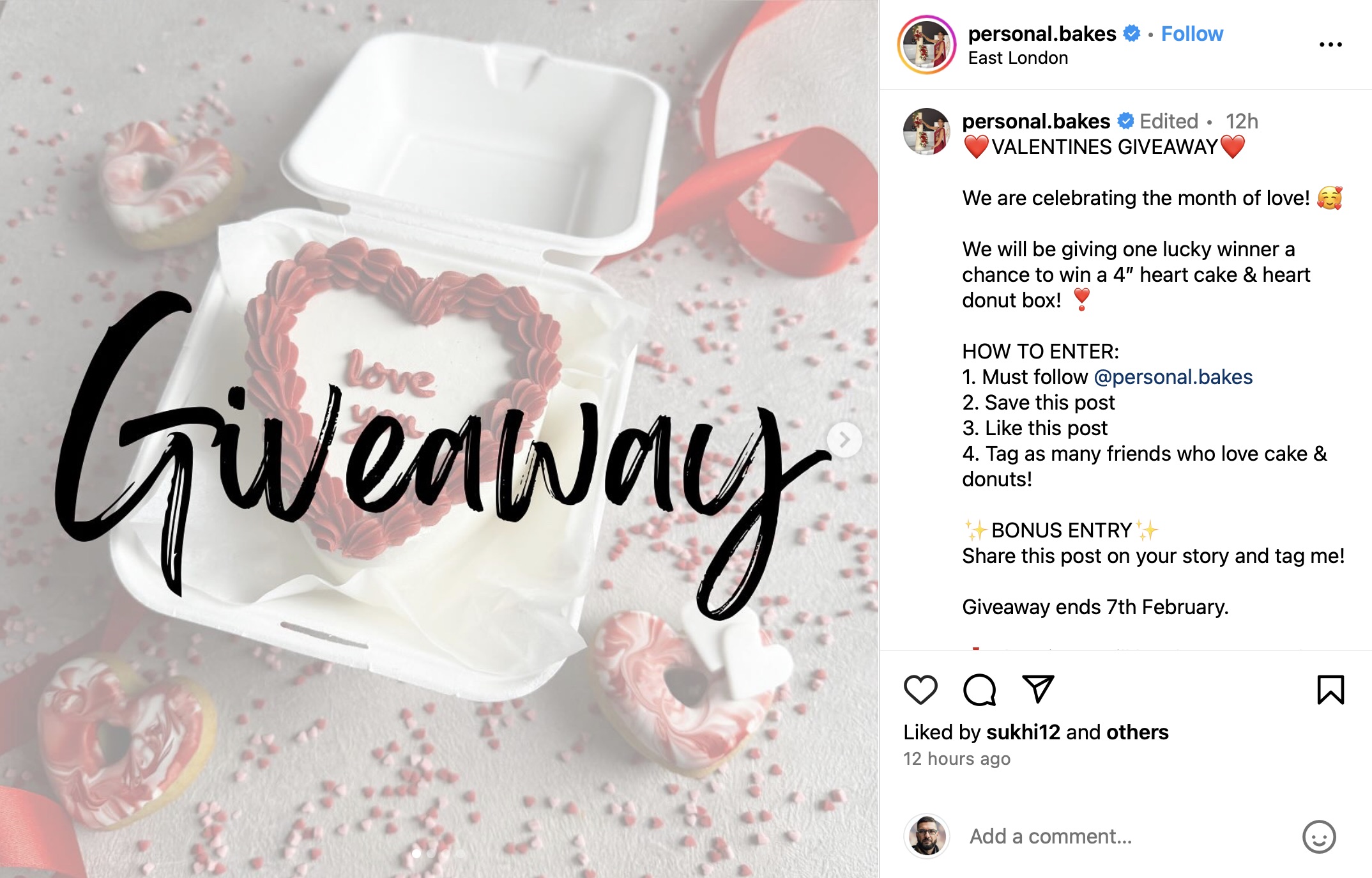 Personal Bakes, a boutique cake designer, hosted a giveaway to achieve these goals: